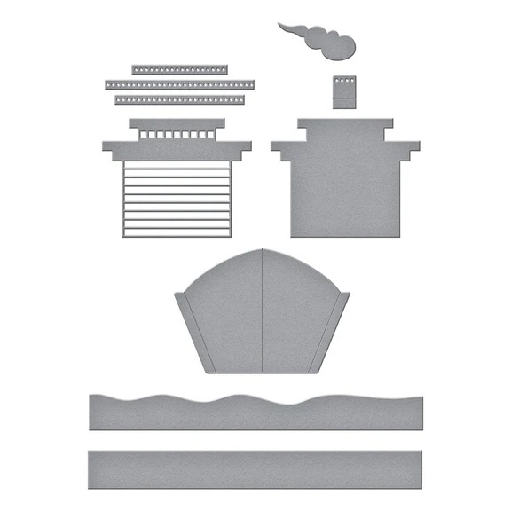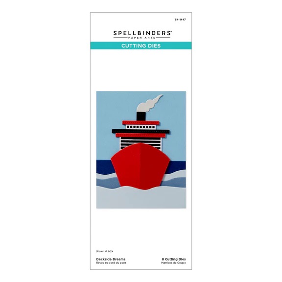 這組 Deckside Dreams 刀模包含 8 片金屬刀模,可以拼出一艘充滿細節的豪華郵輪,連煙囪都栩栩如生,優雅地航行在地中海上。
