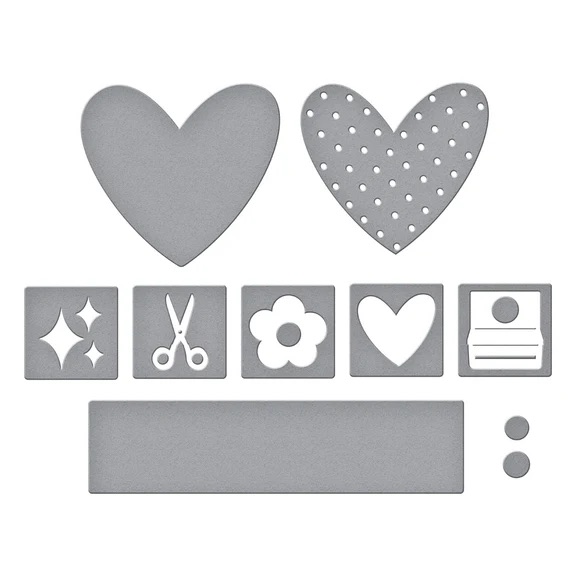 這組刀模不只能打標籤,還能自由搭配心型、相機、剪刀、花朵等圖示!讓你的手作日記、卡片、相本每一頁都可愛又有個性。