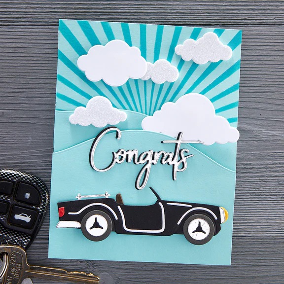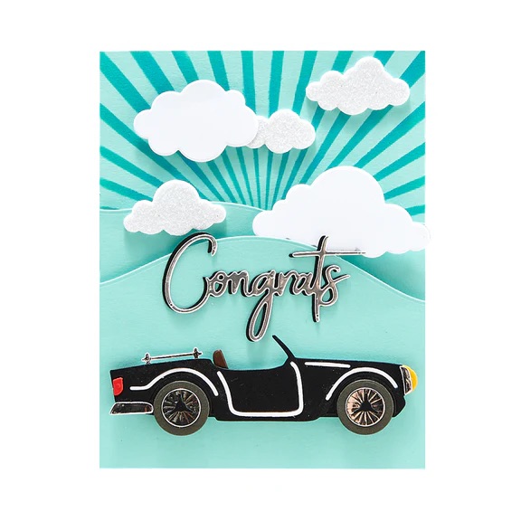 這款 On Cloud Nine 雲朵刀模組 來自 Spellbinders 的 Open Road 系列,共含六種不同大小的蓬鬆雲朵造型刀模。
