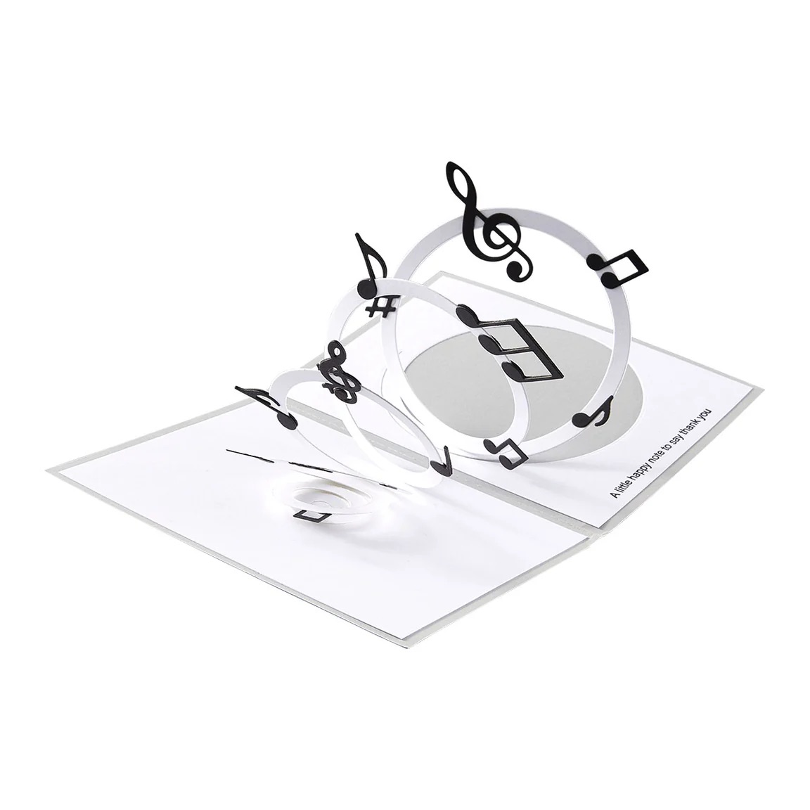 簡單幾個步驟,就能將螺旋刀模安裝在卡片內頁中,打開時呈現立體旋轉的音符效果,讓卡片瞬間充滿驚喜與動感!