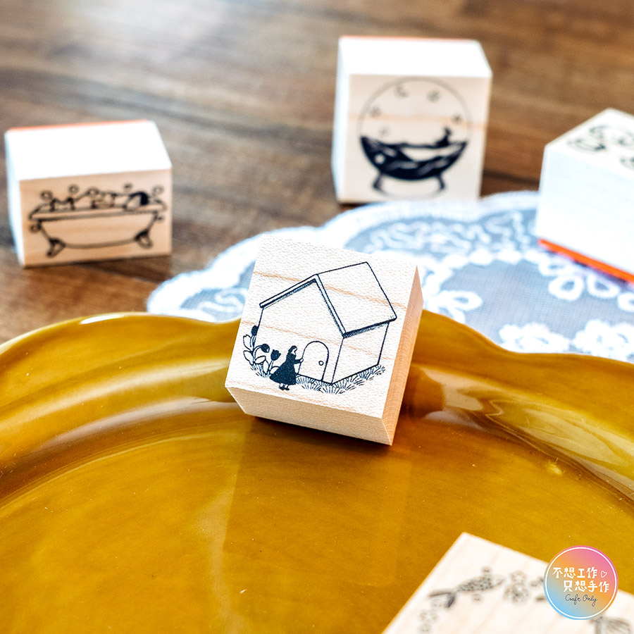 Kin.iro.hitode木頭印章 小屋與女孩 お家と女の子