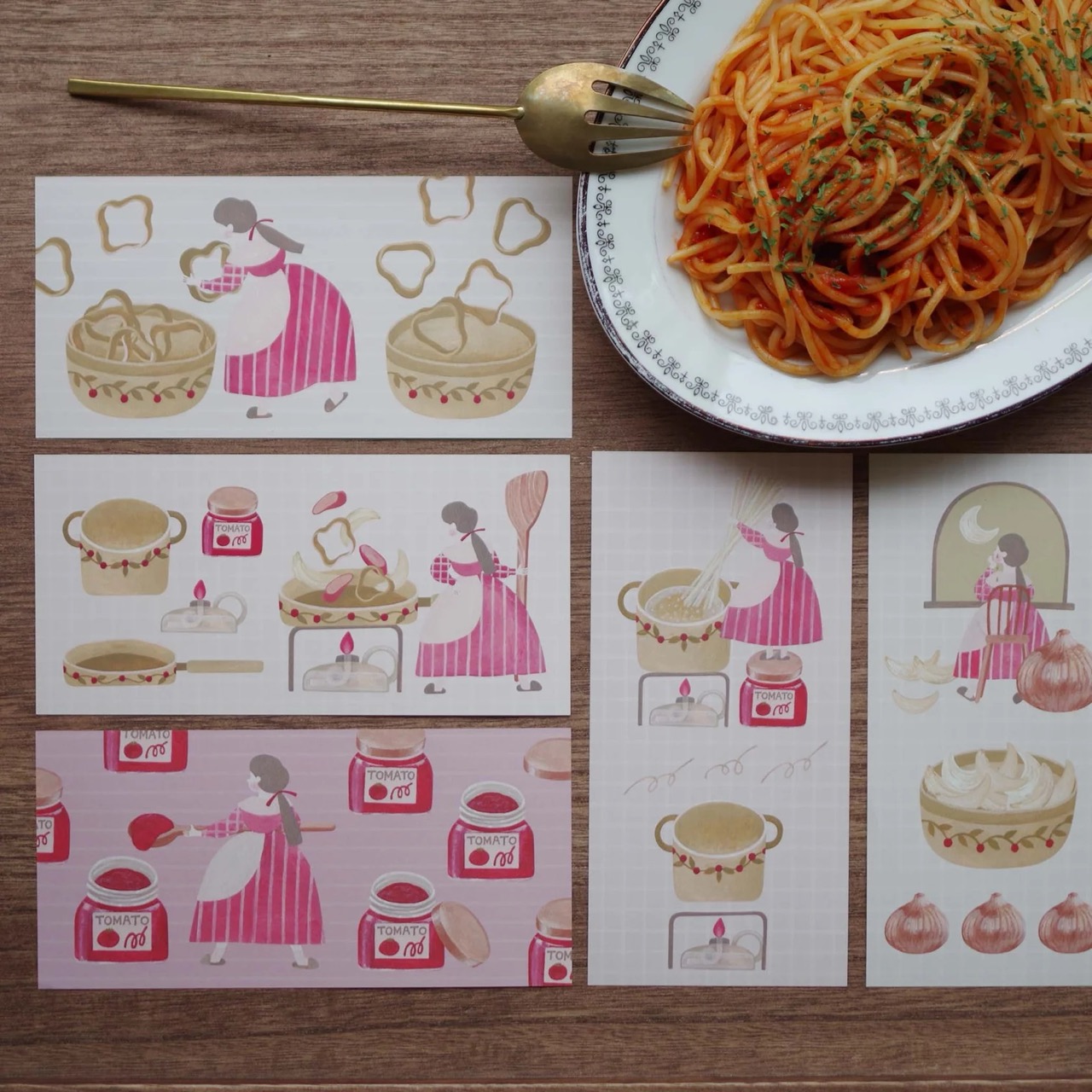描繪了一位努力製作拿坡里義大利麵的女孩。