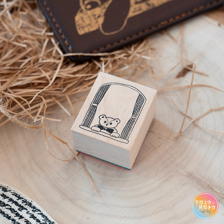 Tobimatsu トビマツ ショウイチロウ天然木頭印章長方形『從窗戶眺望的熊熊』