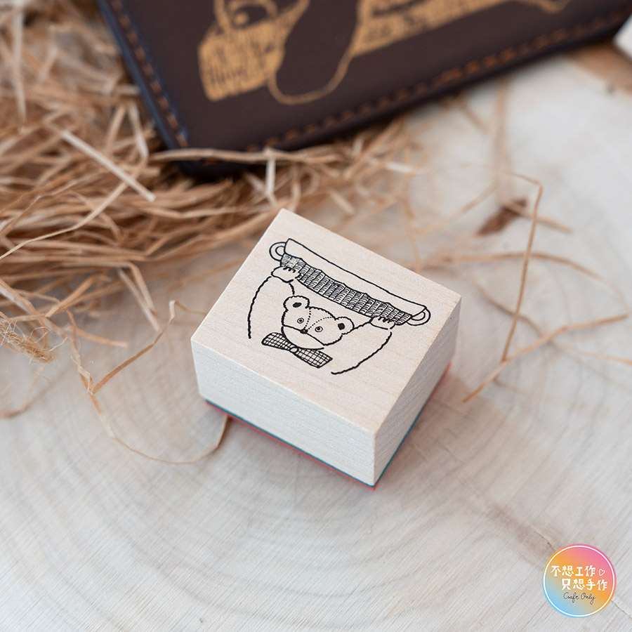 Tobimatsu トビマツ ショウイチロウ天然木頭印章長方形『拿著藍子的熊熊』