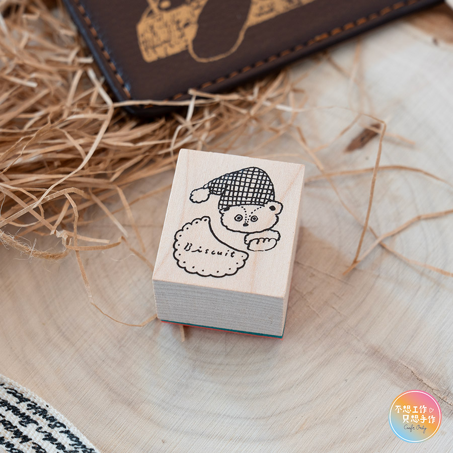 Tobimatsu トビマツ ショウイチロウ天然木頭印章長方形『熊熊的熬夜』