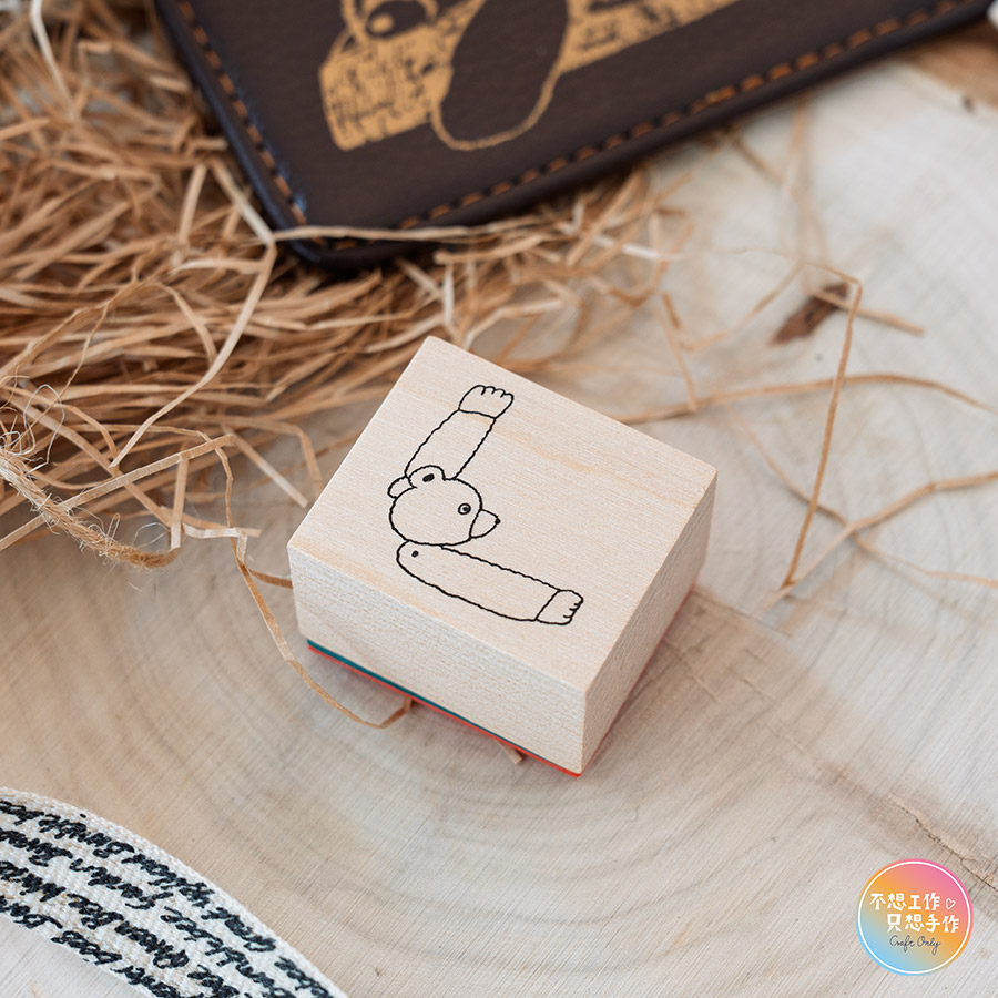 Tobimatsu トビマツ ショウイチロウ天然木頭印章長方形『熊熊框框』