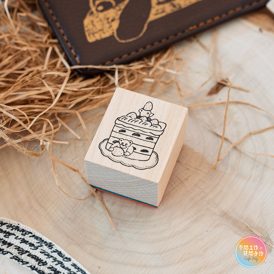 Tobimatsu トビマツ ショウイチロウ天然木頭印章長方形『熊熊與蛋糕』