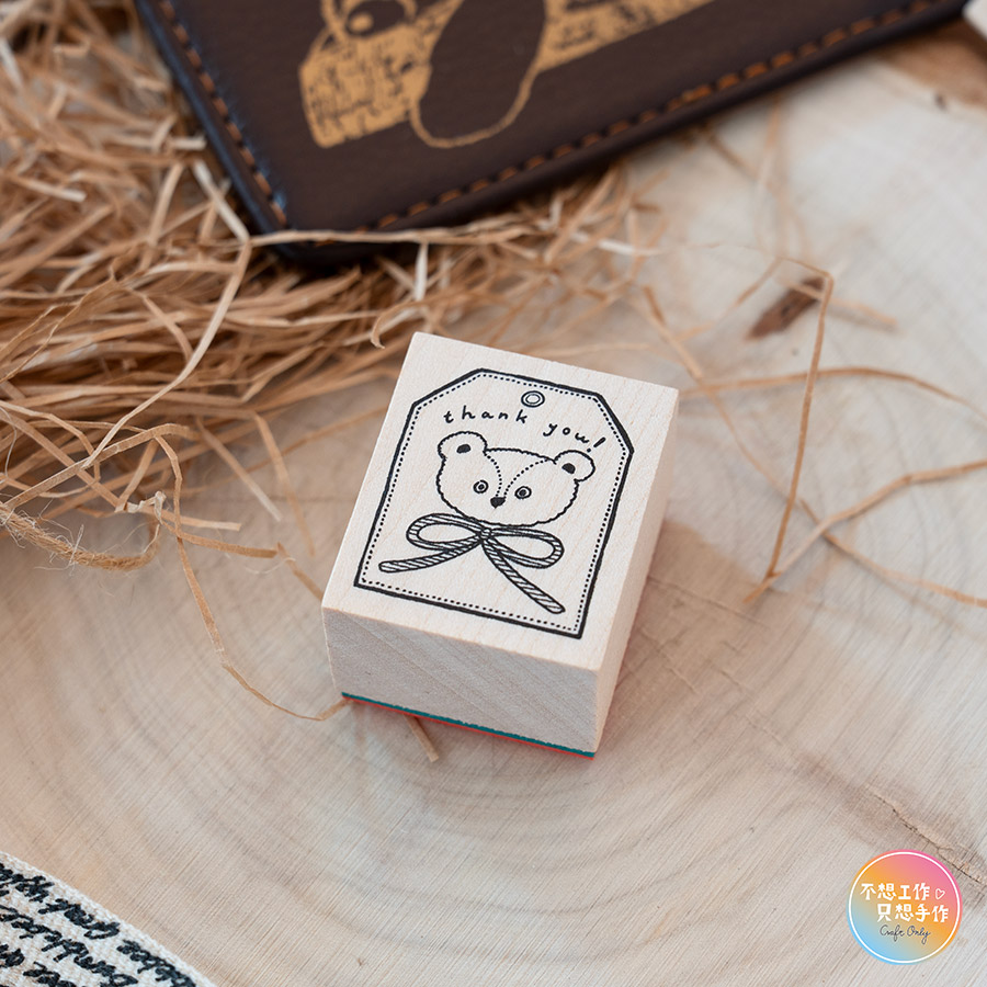 Tobimatsu トビマツ ショウイチロウ天然木頭印章長方形『熊のthank you吊牌』