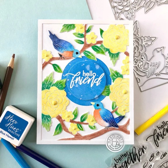 這款 Birds and Flowers 全版刀模 來自 Hero Arts,是一款可完整覆蓋卡片正面的 Fancy Die 設計。