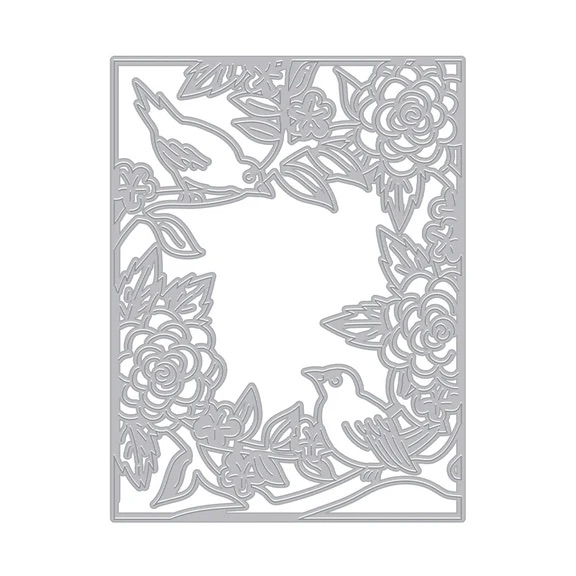 Birds and Flowers 全版刀模 是一款可完整覆蓋卡片正面的精緻鏤空設計,結合鳥類與盛開花卉元素,畫面細膩優雅,適合各種風格的手作卡片。