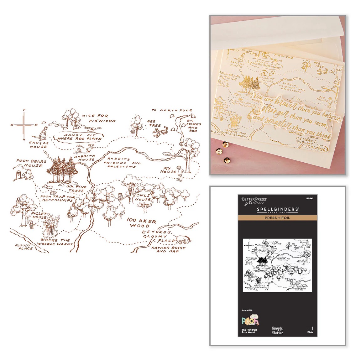 Hundred Acre Wood 百畝森林地圖 Press+Foil Plate 是 Say Cheese Classic Pooh Baby 系列中的重點設計,與 Simple Stories 聯名推出。