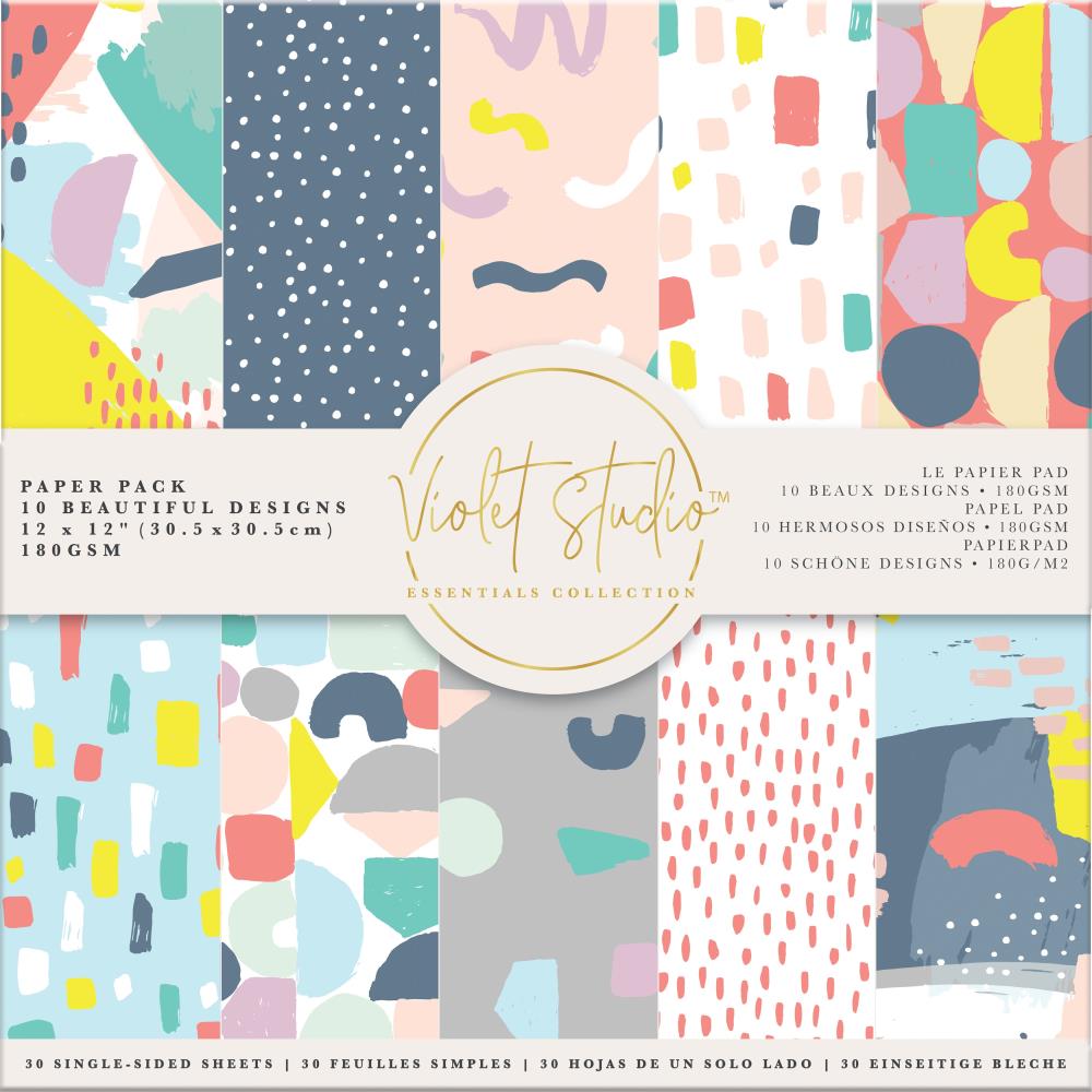 這款《Abstract》設計紙組來自 Violet Studio 的 Essentials 系列,內含 10款多彩抽象圖案設計,各3張,共30張,