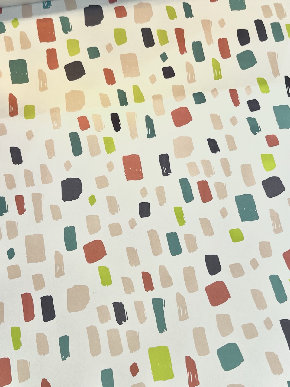 圖案風格多變,有有機線條、色塊拼貼、筆刷紋理等元素