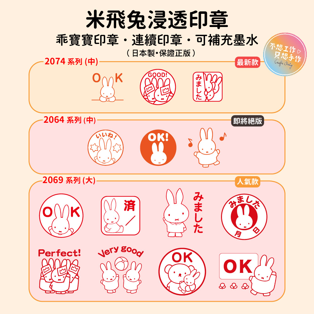 【2074系列】 米飛兔浸透印章|可補墨|日本製Miffy 乖寶寶印章 連續印章
