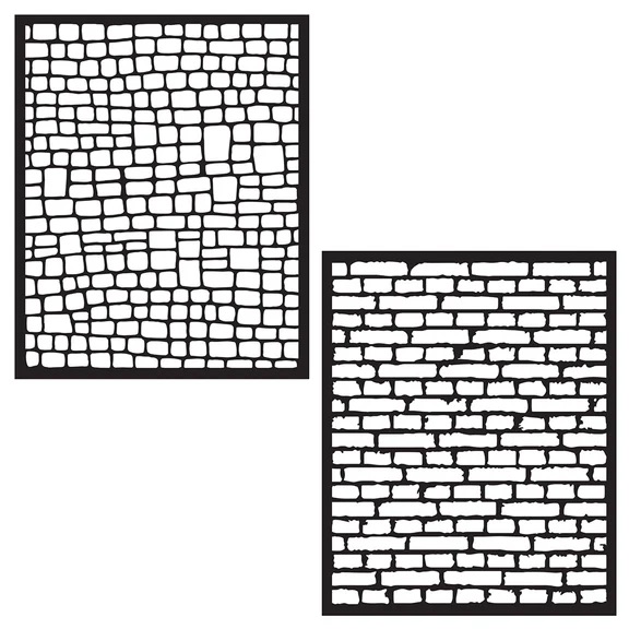 《Wall Textures Stencil Pair》內含 2款經典牆面紋理型版,一片是不規則的鵝卵石牆,