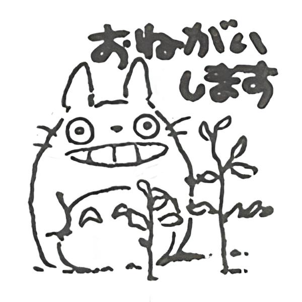 這款以人氣動畫《龍貓》為主題的橡皮印章,印面寫著可愛的「おねがいします」(拜託啦),
