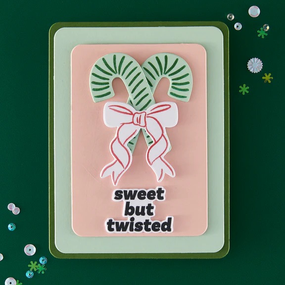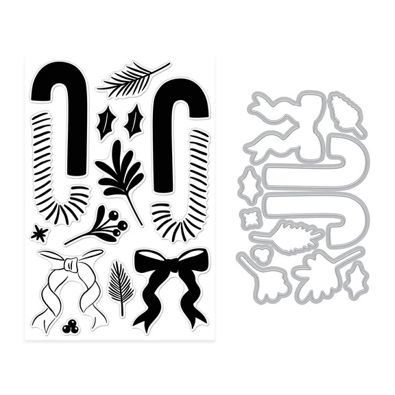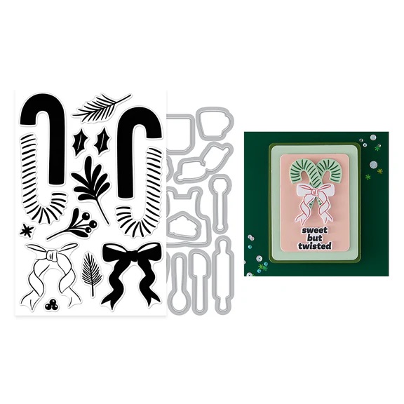The Candy Cane Swag Stamp & Cut Set 是一款充滿節慶氛圍的印章與刀模組合,讓你輕鬆打造經典的聖誕拐杖糖造型,