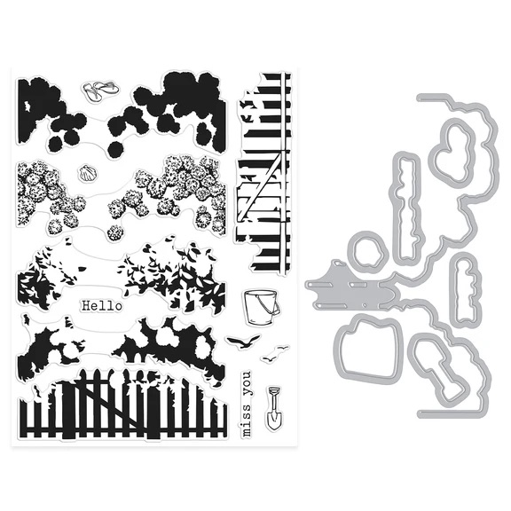 搭配內附刀模,可剪出花叢、柵欄、工具與標語,增添立體感與細節,適合製作友情卡、思念卡、自然系設計作品等。