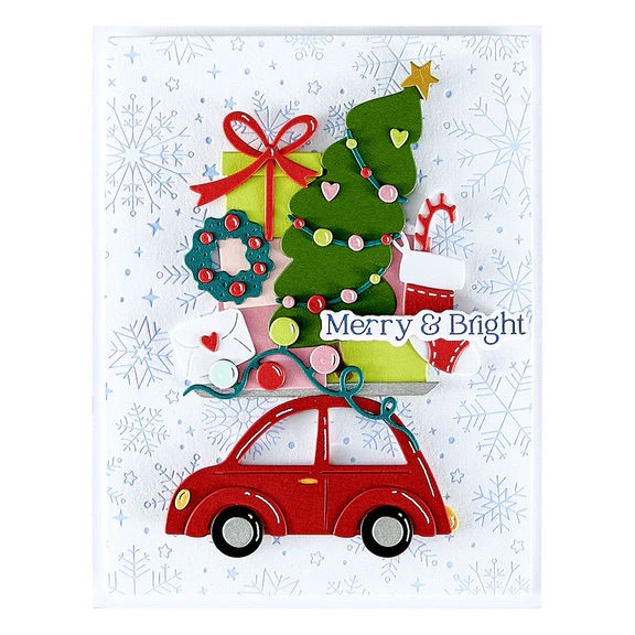 這組共 23 枚的刀模組打造出一台準備出發過聖誕的可愛小車,車頂塞滿了樹、禮物、花圈、聖誕襪、燈串等節慶必備道具,滿滿的聖誕歡樂一次收進作品裡!