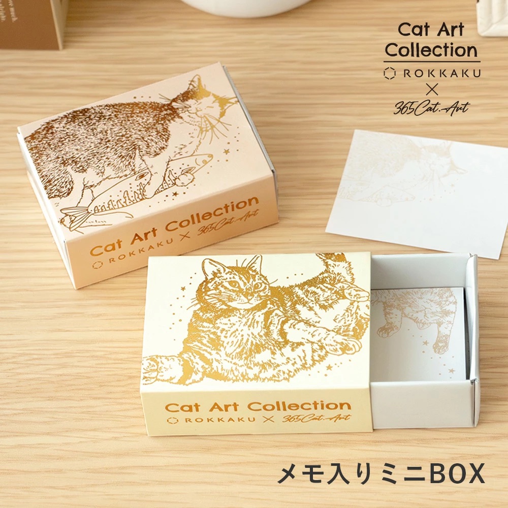 由貓咪愛好者插畫家 Orie Kawamura 創立的「365Cat.Art」,與擅長精緻箔押加工的「ROKKAKU」合作推出迷你紙盒系列,專為喜愛貓咪的你設計的收藏品。