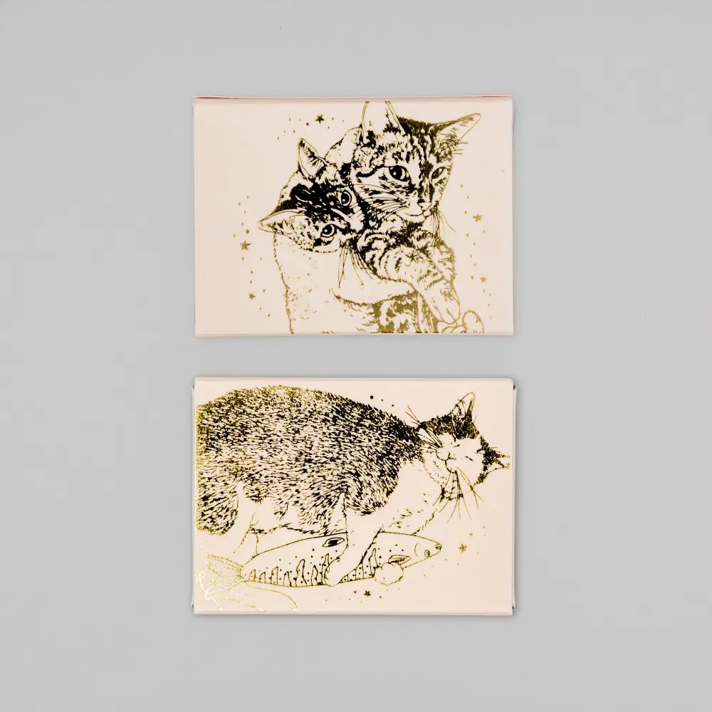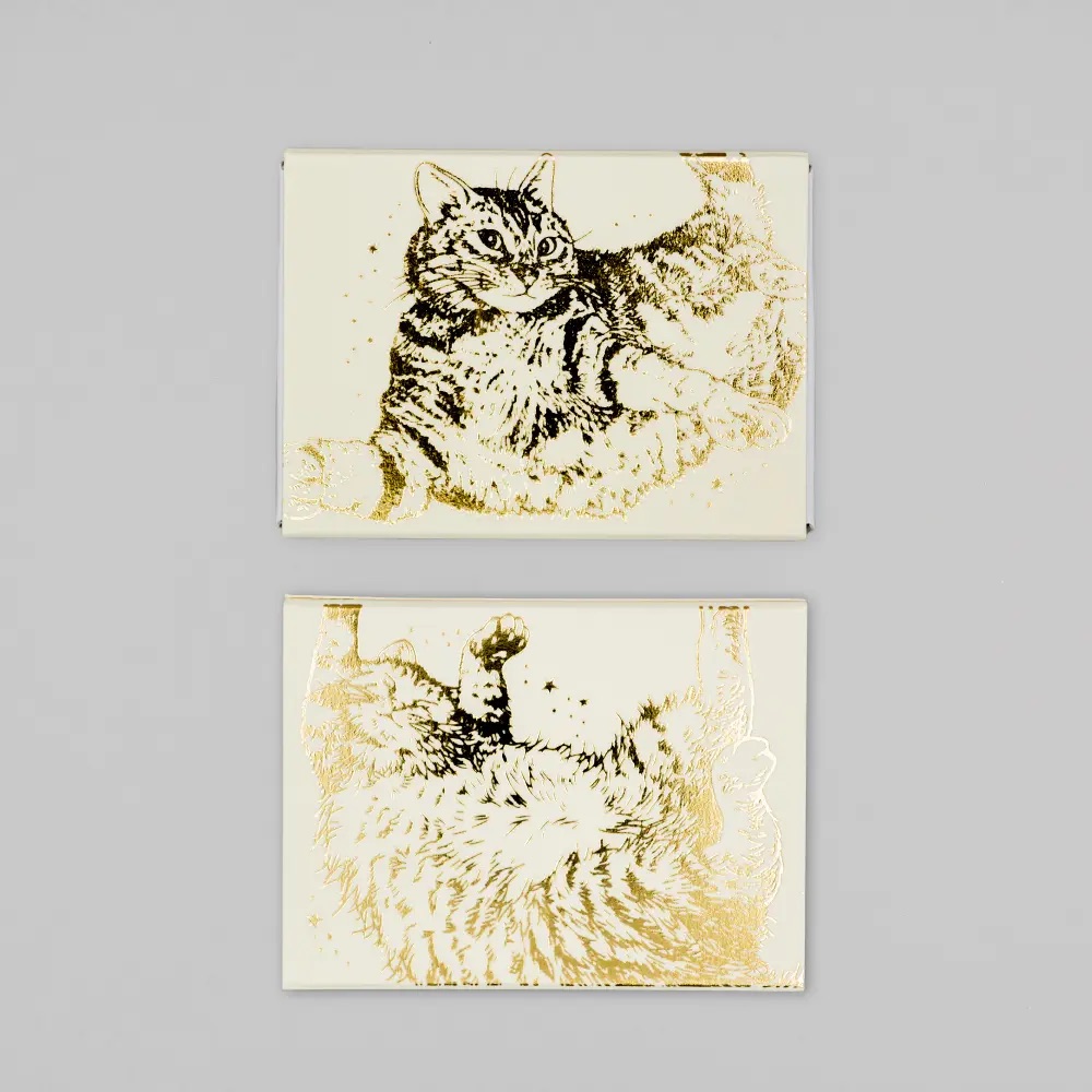 ・雙面皆有不同的貓咪插畫圖樣搭配閃耀金箔壓印,提升整體質感。