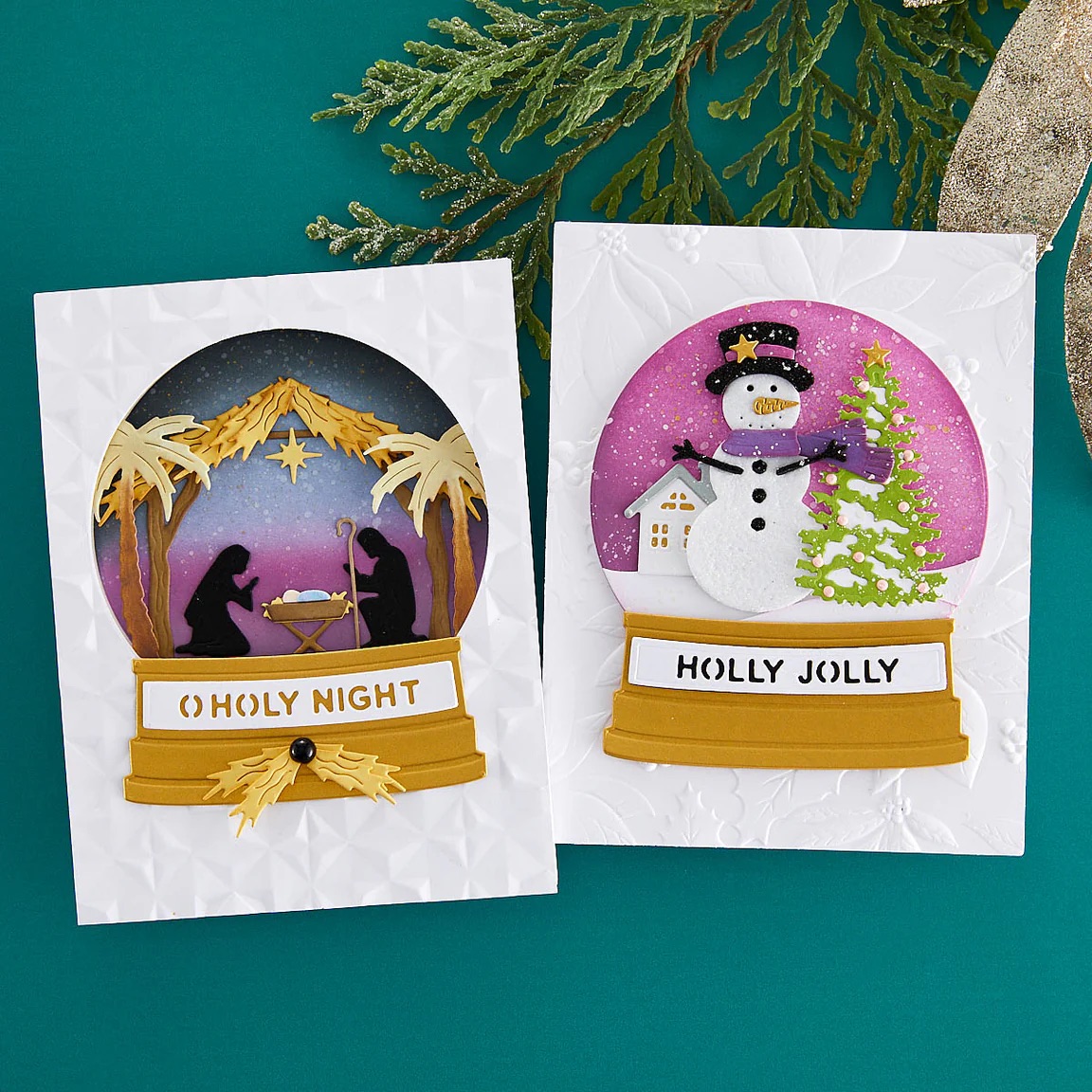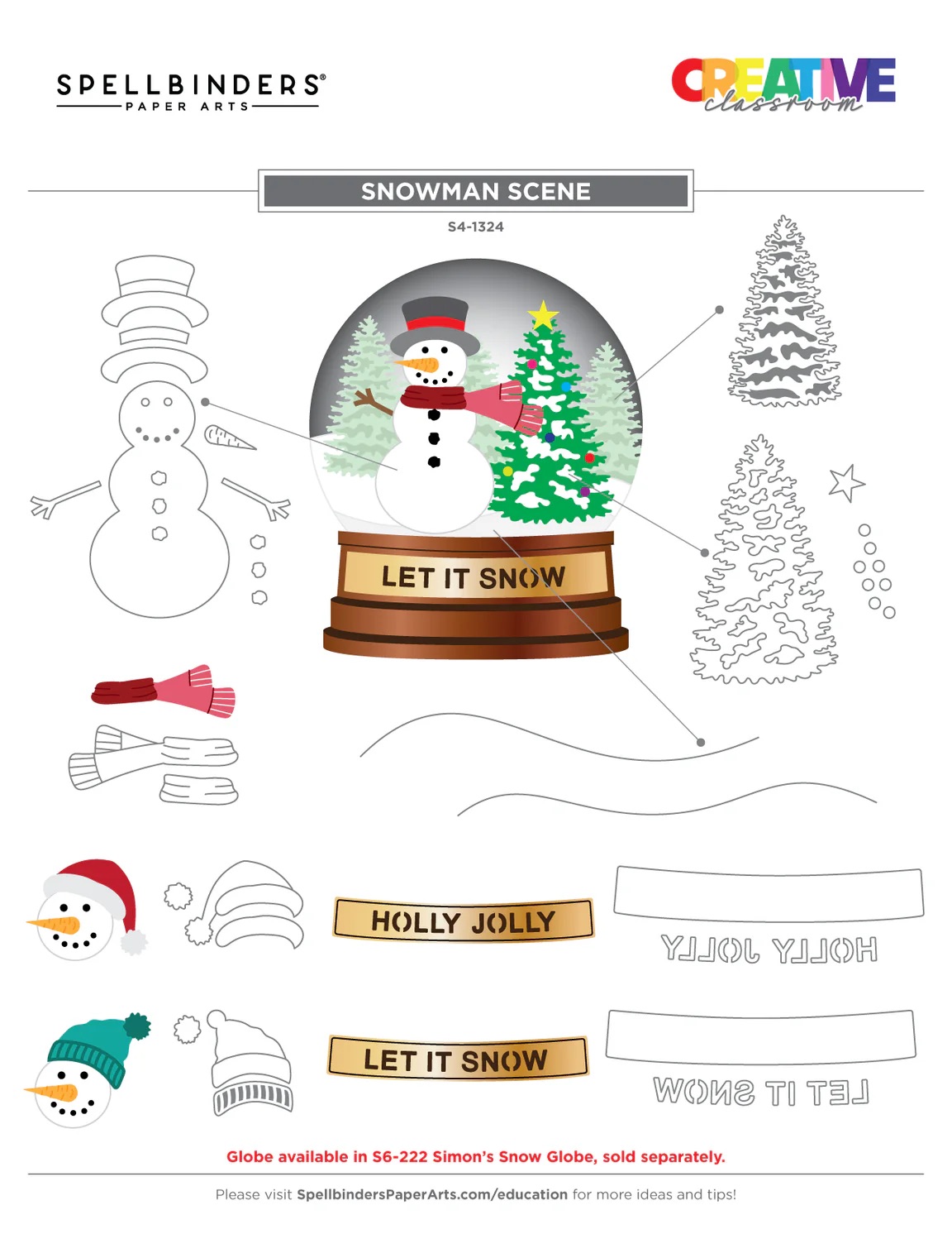 這組刀模為「Simon's Snow Globes Collection」系列的夢幻雪景場景,設計搭配 S6-222《冬季水晶球刀模組》使用。