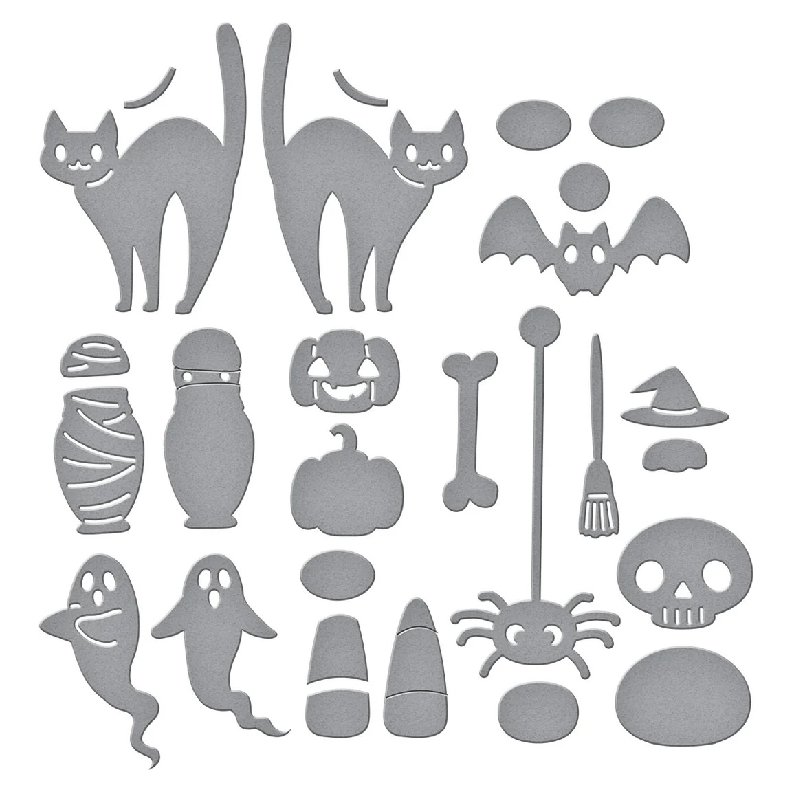 內含黑貓、小鬼、木乃伊、南瓜、糖果玉米、蝙蝠、掃帚、蜘蛛等萬聖節角色,精緻可愛,