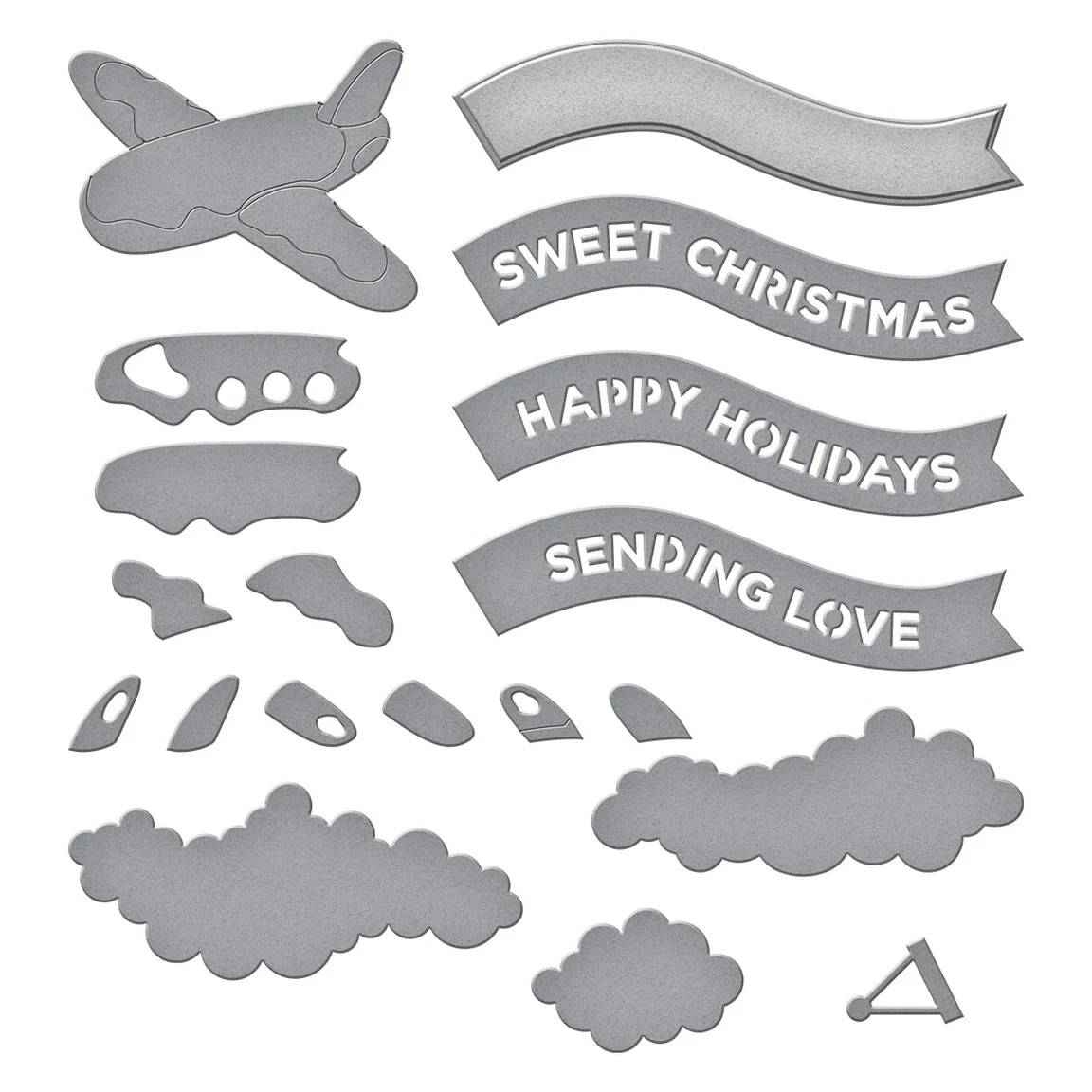 Stamperia 設計、Spellbinders 製作的這款糖果聖誕系列刀模,內含 13 款薄金屬刀模,能拼出一架沾滿糖霜的薑餅飛機,
