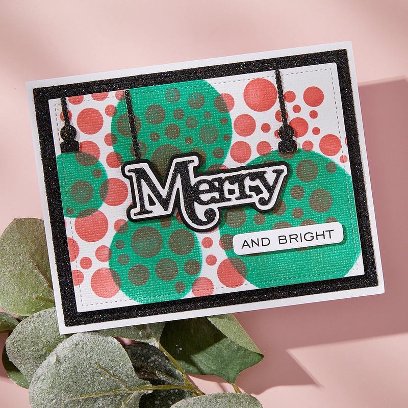 Lots of Circles 型版組出自 Lisa Horton 的《All About Christmas》系列,內含兩張塑膠型版與四個遮罩形狀,