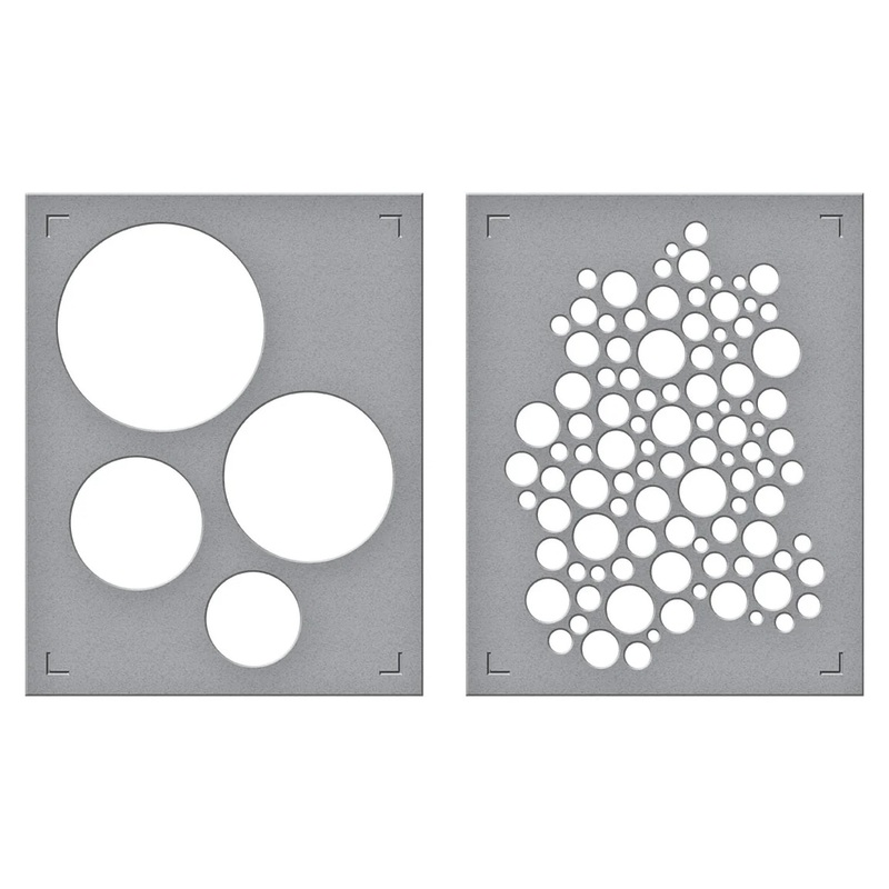 Lots of Circles 型版組出自 Lisa Horton 的《All About Christmas》系列,內含兩張 4.75 × 6.00 英吋的塑膠型版與四種遮罩形狀,