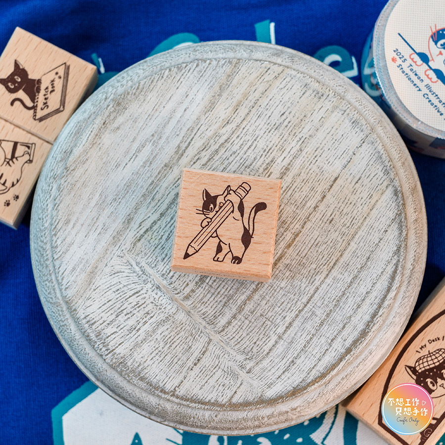 臺灣文畫季 x Ob1 系列 木頭印章 - 鉛筆與貓