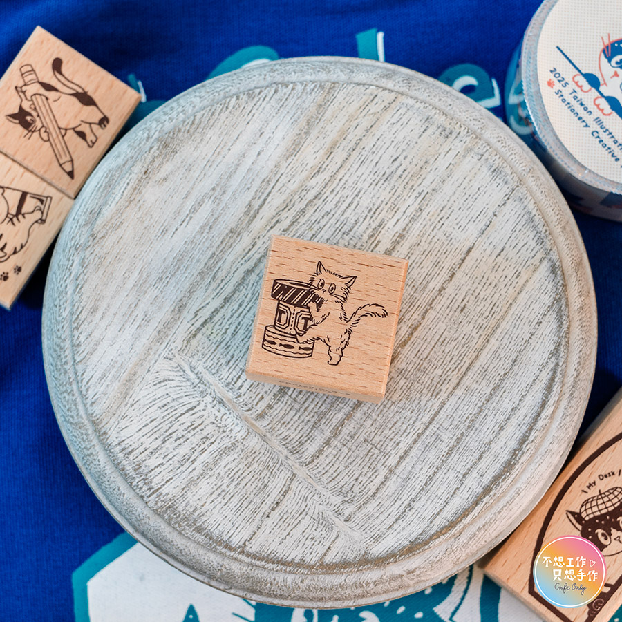 臺灣文畫季 x Ob1 系列 木頭印章 - 紙膠帶與貓