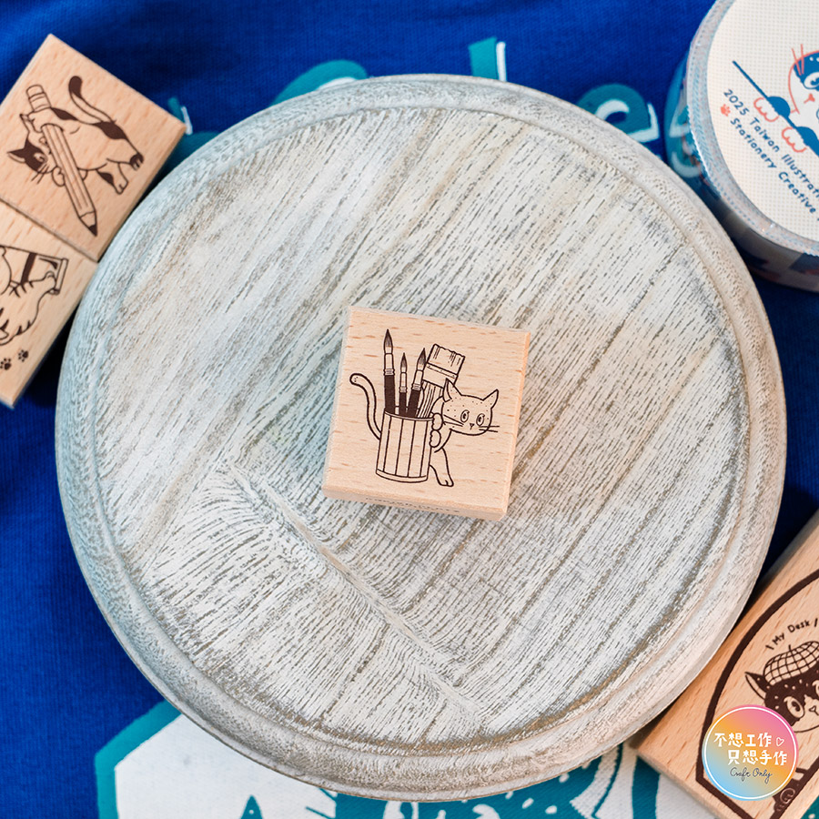 臺灣文畫季 x Ob1 系列 木頭印章 - 筆筒與貓