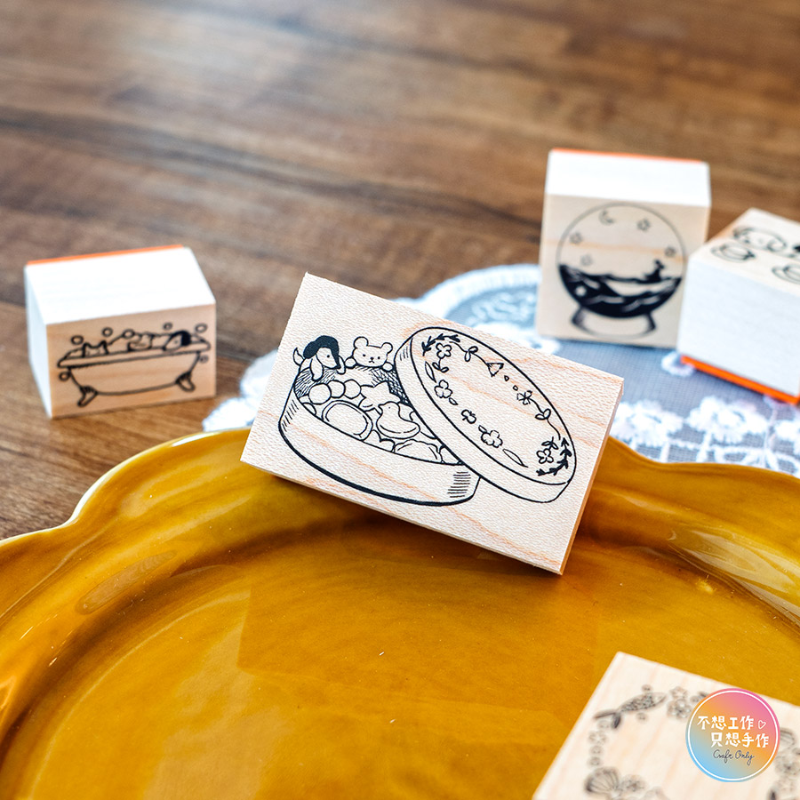 Kin.iro.hitode木頭印章 餅乾罐與小動物 クッキー缶とちいさなどうぶつ