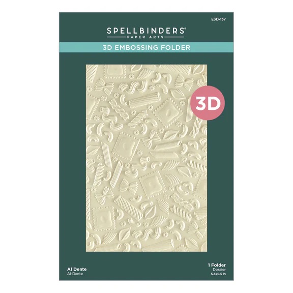 這款 Al Dente 3D 義大利麵主題浮雕版,以滿滿的義大利麵造型作為背景設計,從蝴蝶麵、義大利麵條到各式可愛麵食紋理,讓你的作品立刻充滿玩味。也非常適合與 Buon Appetito 系列的刀模、印章互相搭配,創作出更多充滿幽默與溫度的料理系紙藝作品!