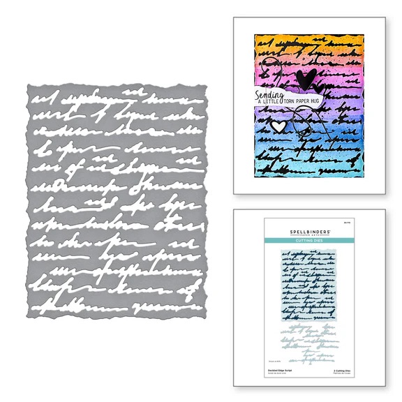 Deckled Edge Script Etched Dies 來自 Beautifully Imperfect 系列,是一組由 兩款薄刀模 所組成的 A2 尺寸背景刀模。