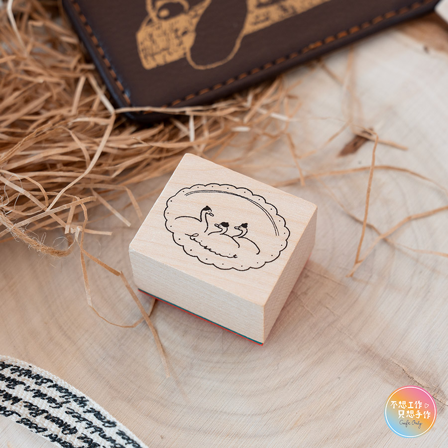 Tobimatsu トビマツ ショウイチロウ天然木頭印章長方形『餅乾天鵝』