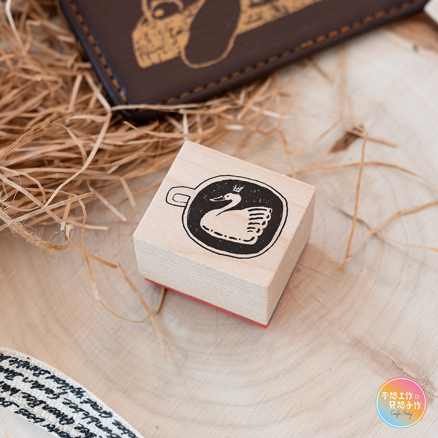 Tobimatsu トビマツ ショウイチロウ天然木頭印章長方形『咖啡裡的天鵝』
