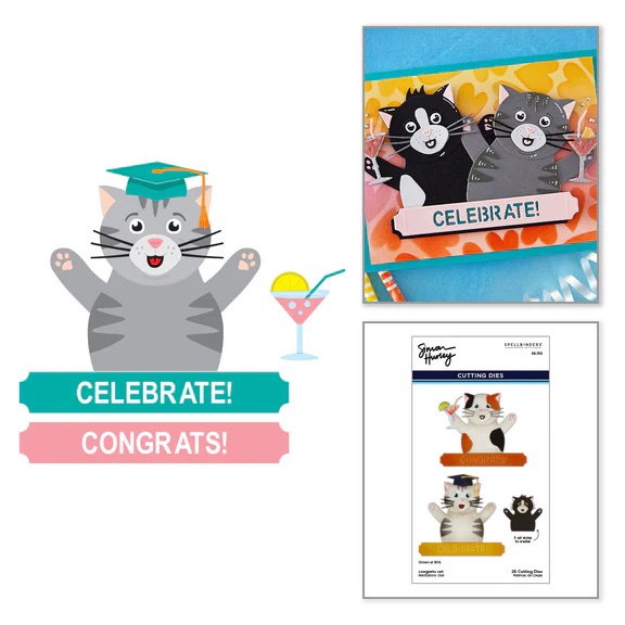 Spellbinders 恭喜貓咪刀模組 Congrats Cat|擁抱貓×祝賀標語×派對飲品|Simon Hurley 設計