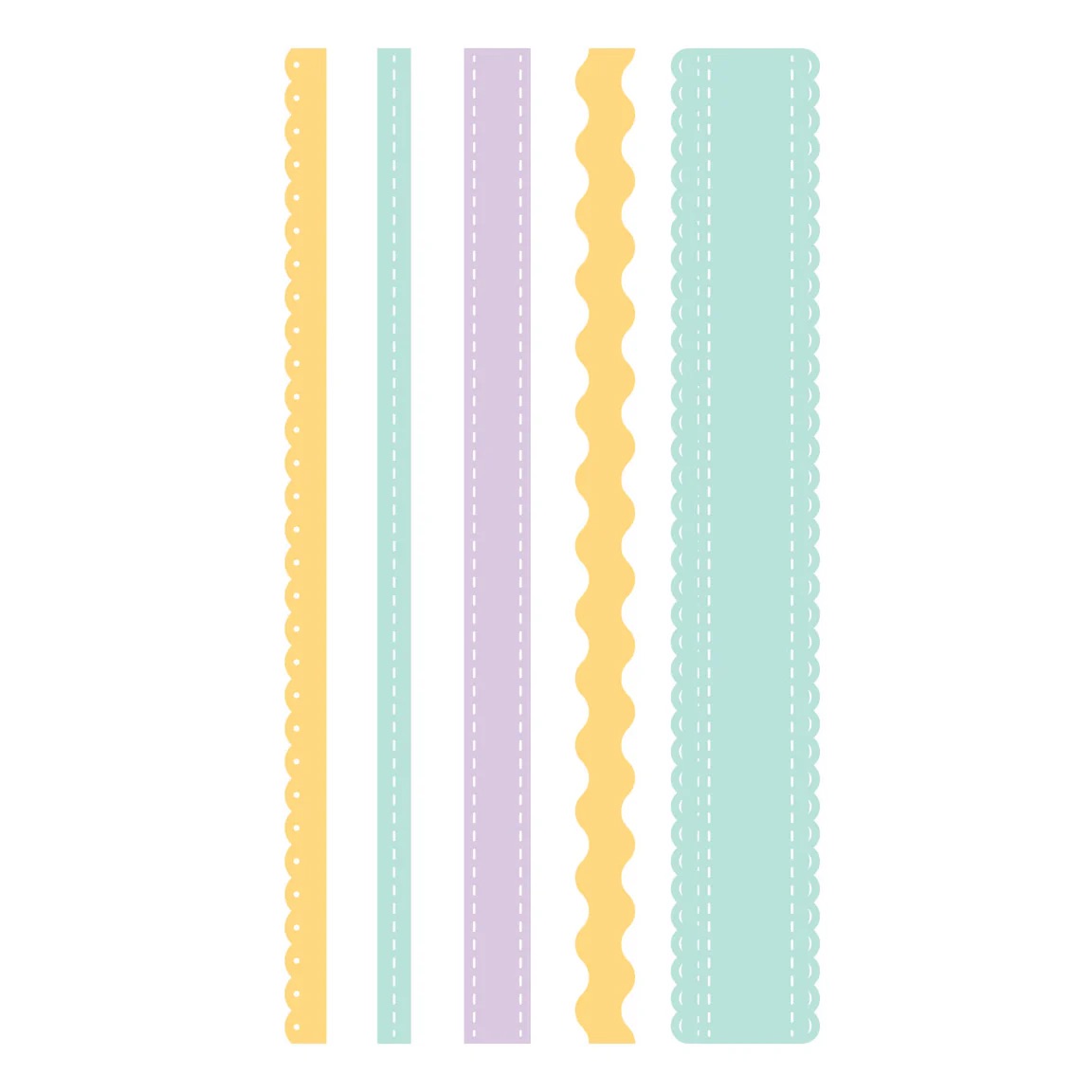 本組包含 5 片薄型金屬刀模,可裁切出五種不同風格的裝飾邊緣設計。