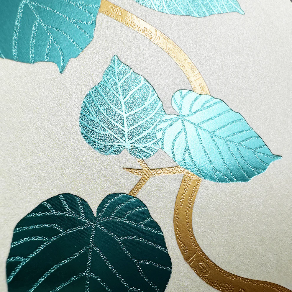 - 以燙金凹凸表現葉片紋理與細節線條