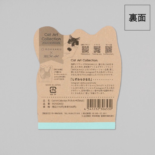 ROKKAKU×365Cat.Art 貓咪燙金造型便條紙「わらび」|貓咪輪廓便箋 活潑可愛款