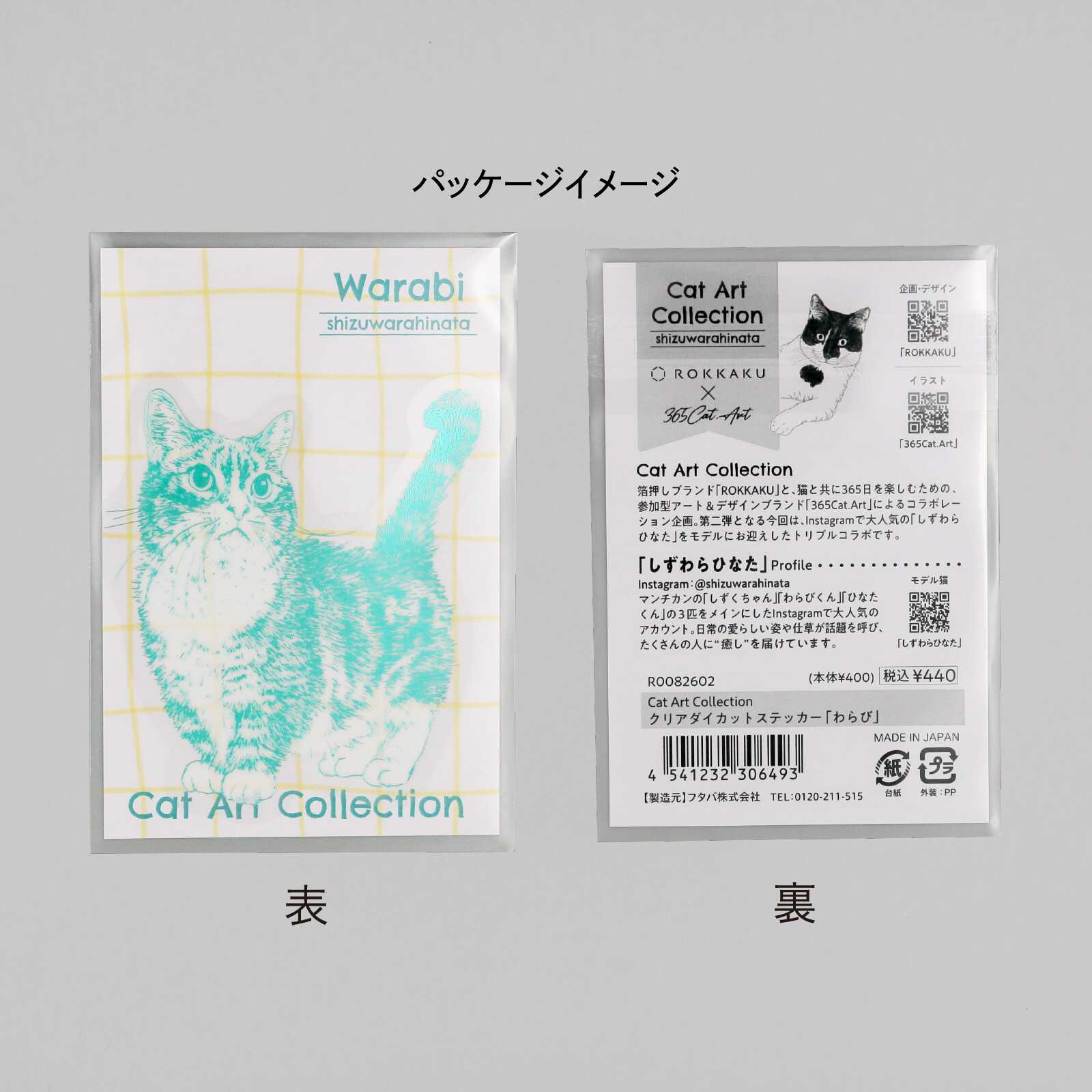 由燙金品牌 ROKKAKU 與插畫品牌 365Cat.Art 聯名推出, 以人氣貓咪「わらび」為主角的透明燙金造型貼紙。